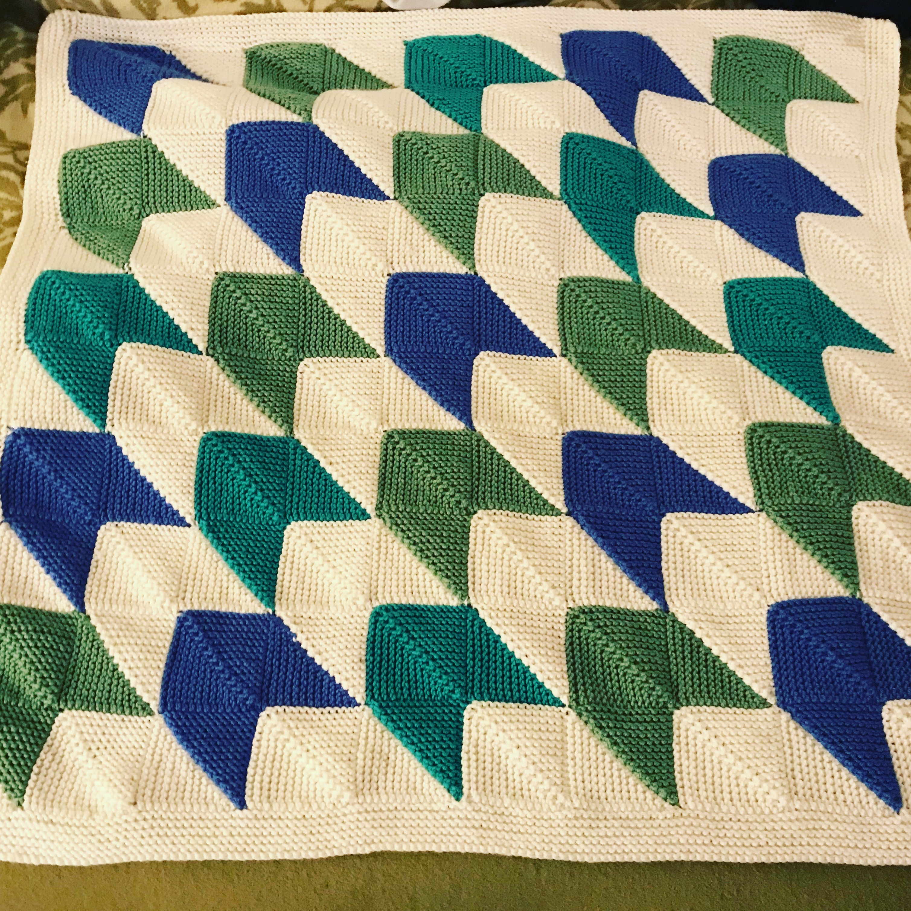 Baby blanket knit mitered-corners